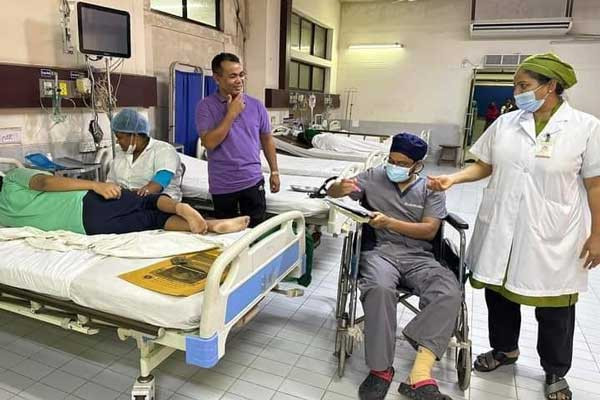 একটি ছবিতে দেখা যায়, ডা.মাহবুব আলম হুইলচেয়ারে বসেই অন্যান্য রোগীদের ফলোআপ করছেন।