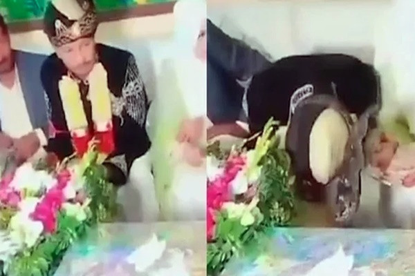 এক ভিডিও ফুটেজে দেখা যায়, পরিবারের সদস্যদের সঙ্গে বর সোফায় বসা ছিল। হঠাৎ করেই বর সোফা থেকে ঢলে পড়ে যান। পরে পরিবার লোকজন তাকে টেনে তুলে হৃদস্পন্দন পরীক্ষা করে।