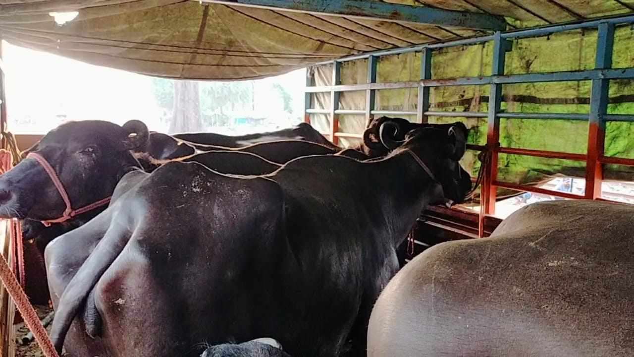 শনিবার (১৪ অক্টোবর ) বিকাল৪টার সময় ভারতের হারিয়ানা থেকে ৭টি ট্রাকে ছোট-বড় মোট১০৪ টি মহিষ ৫দিন পর বেনাপোল বন্দরে পৌছায়।