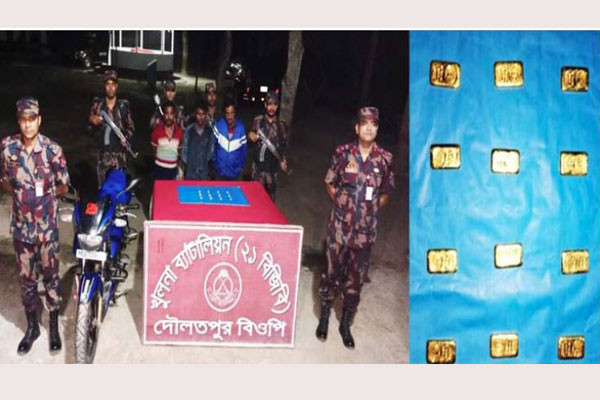 বেনাপোল সীমান্ত থেকে এক কেজি ৩৯৯ গ্রাম ওজনের ১২টি স্বর্ণের বারসহ তিনজনকে আটক করেছে বর্ডার গার্ড বাংলাদেশ (বিজিবি) সদস্যরা। যার বাজার মূল্য প্রায় এক কোটি ২৬ লাখ টাকা।